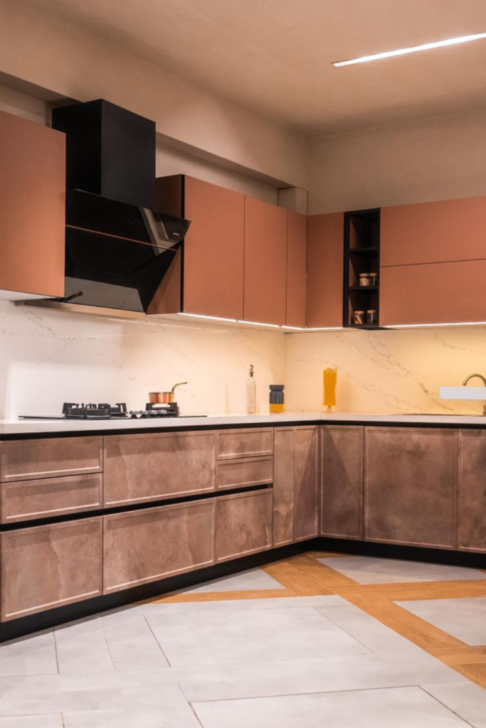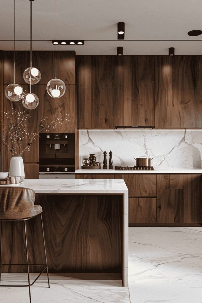 This finish is made from thin layers of natural wood, offering a rich, natural look while being more affordable than solid wood. Veneer finishes bring warmth and sophistication to kitchen interiors.